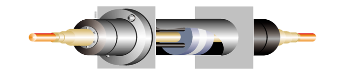 Vysokonapěťová hermetická kabelová průchodka (VHKP) VHKP slouží pro silové obvody vysokého napětí s hodnotami provozních, rozběhových a zkratových proudů na velmi vysoké úrovni: - 1 vodičová a 3 vodičová pro tělo s průměrem 168 mm - 3 vodičová a 4 vodičová pro tělo s průměrem 508 mm